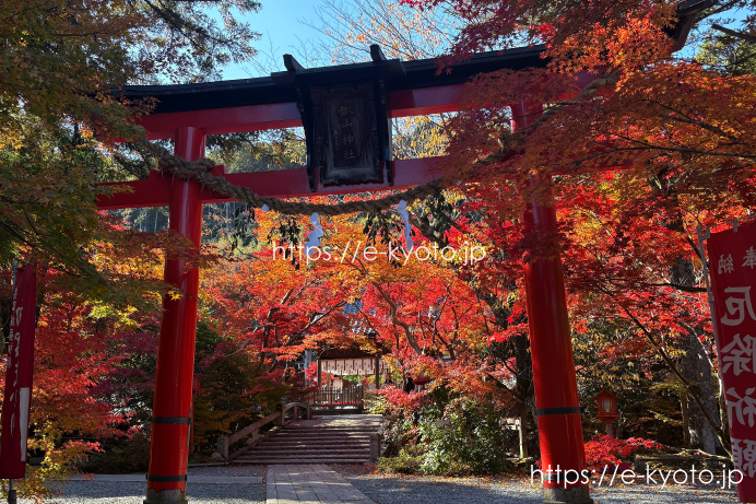 大原野神社の紅葉の見頃は、毎年11月上旬から中旬です。境内では、一の鳥居から三の鳥居へ続く参道に多くのモミジが植えられており、紅葉の絶好スポットとして知られています。
