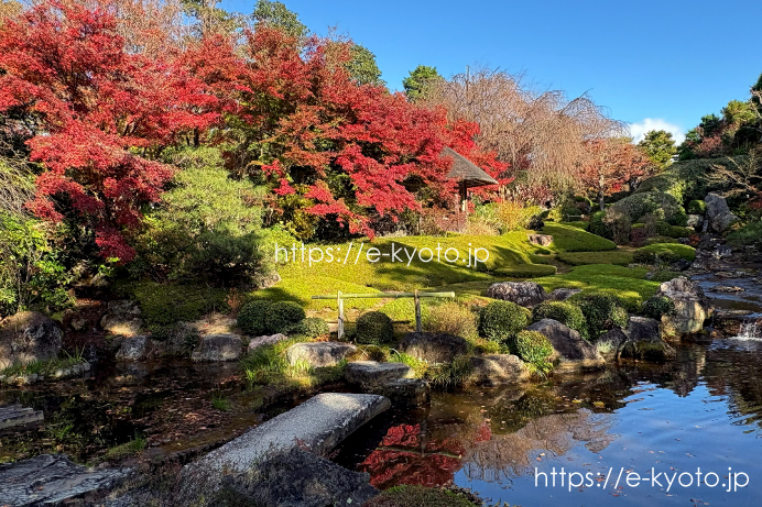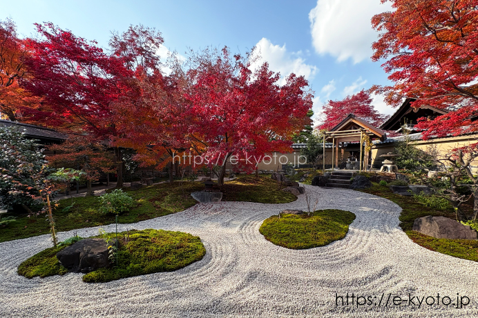 退蔵院は妙心寺の塔頭の一つで、紅葉は例年11月下旬から12月上旬にかけて見頃を迎えます。なかでも注目したいのが、庭園「余香苑(よこうえん)」の景観です。